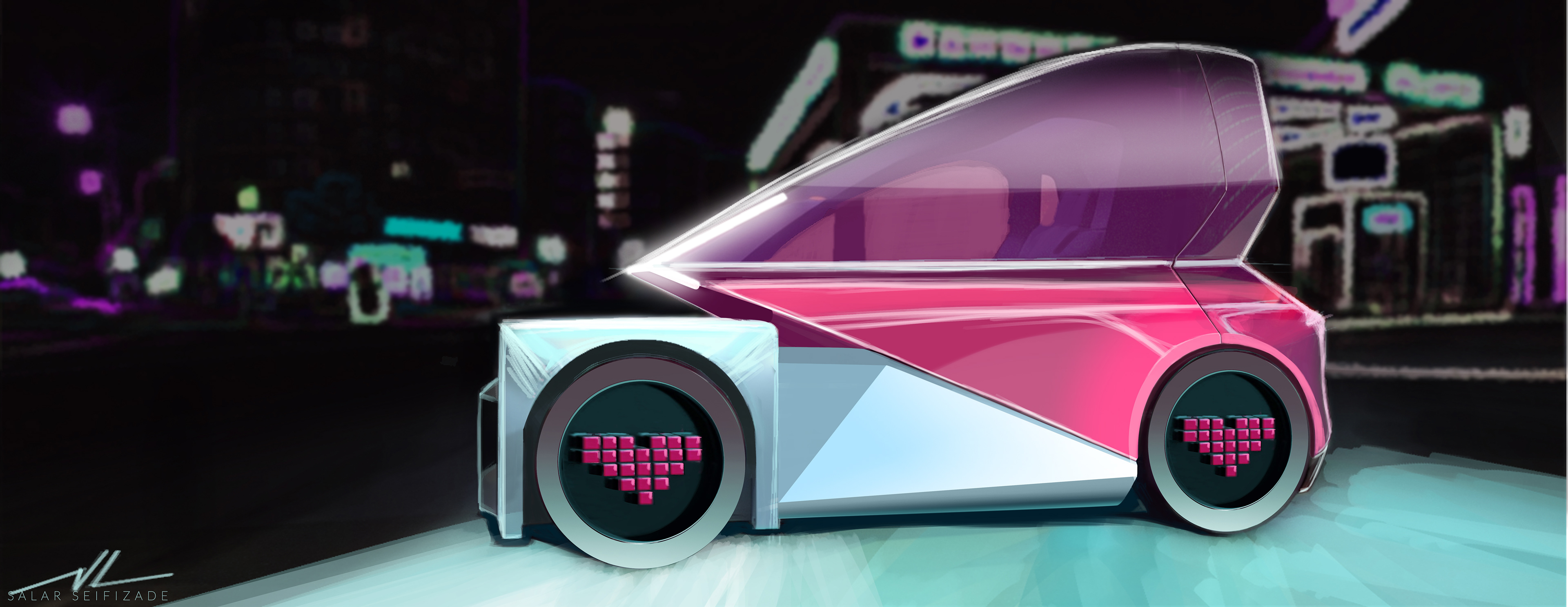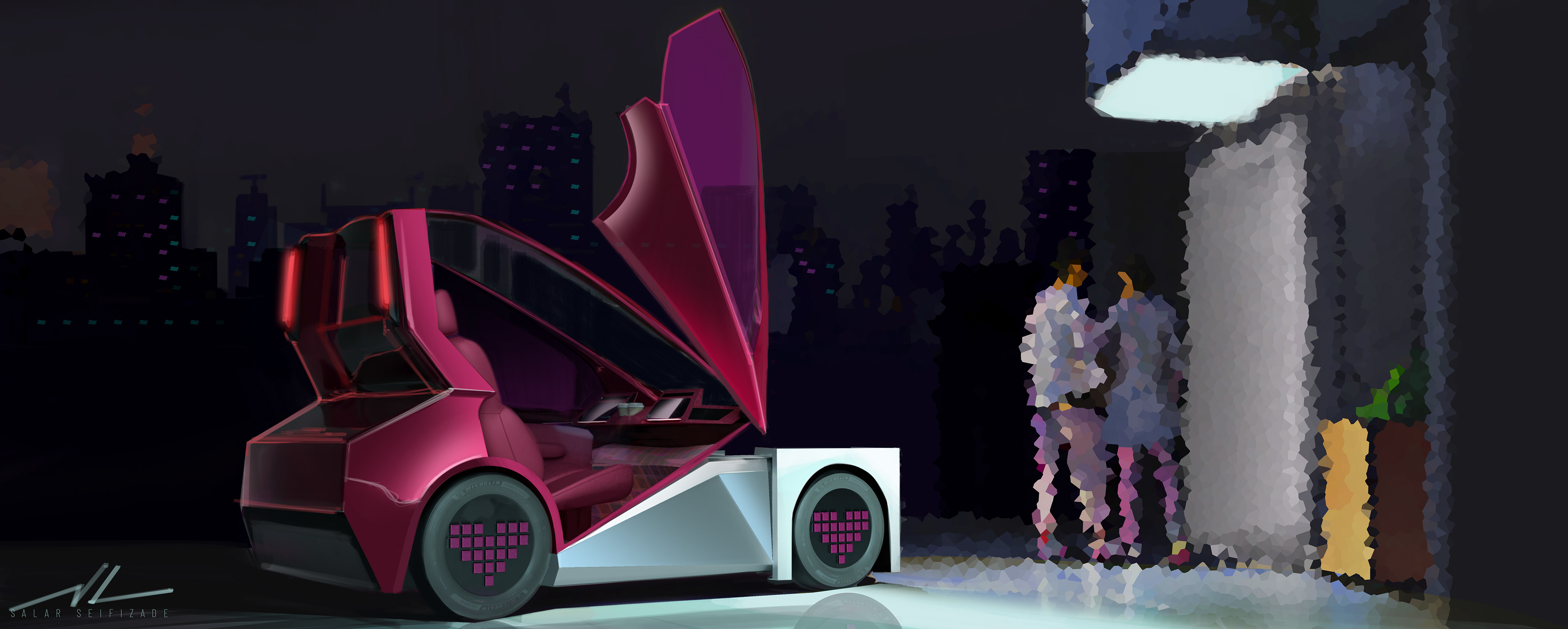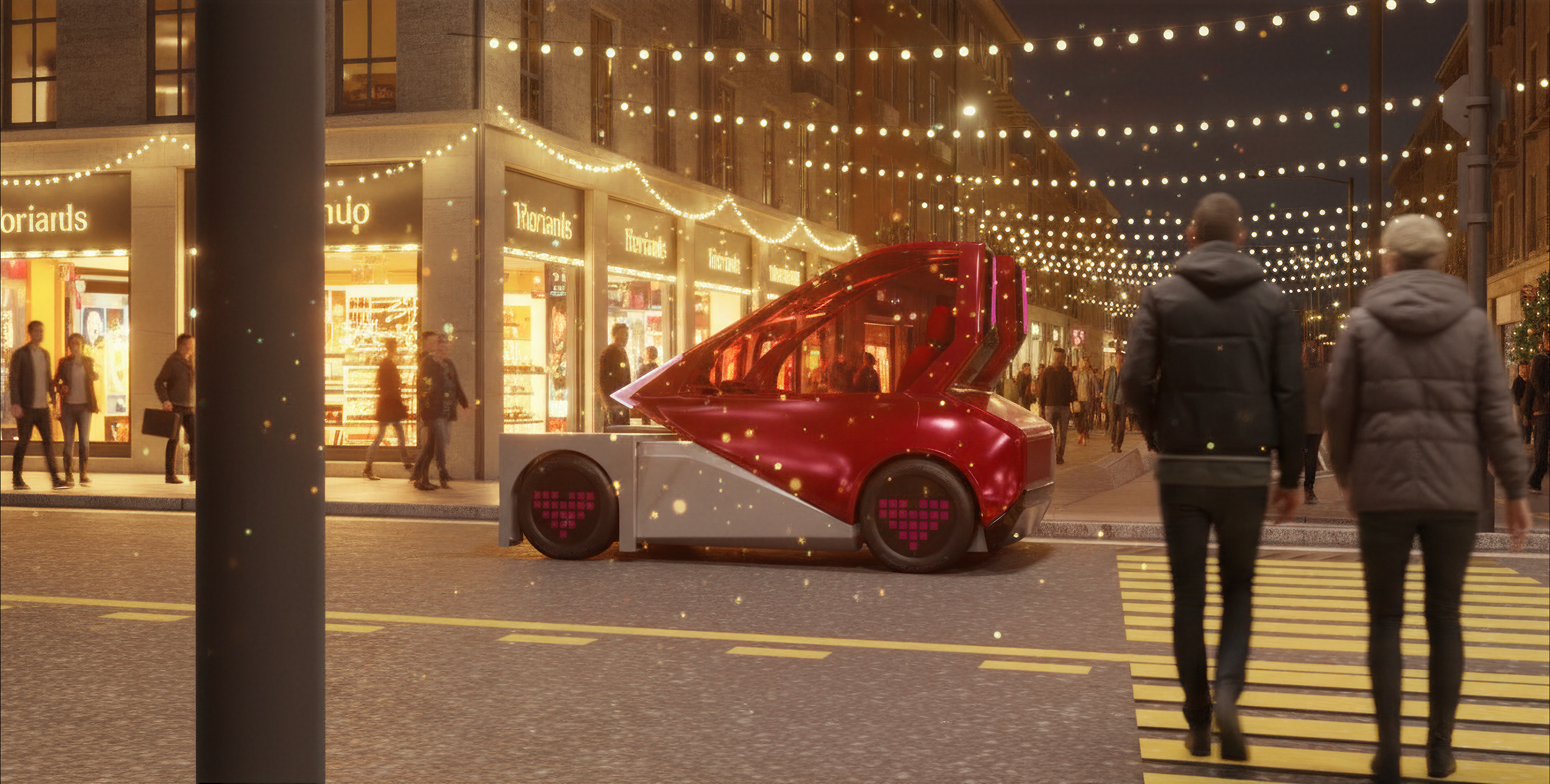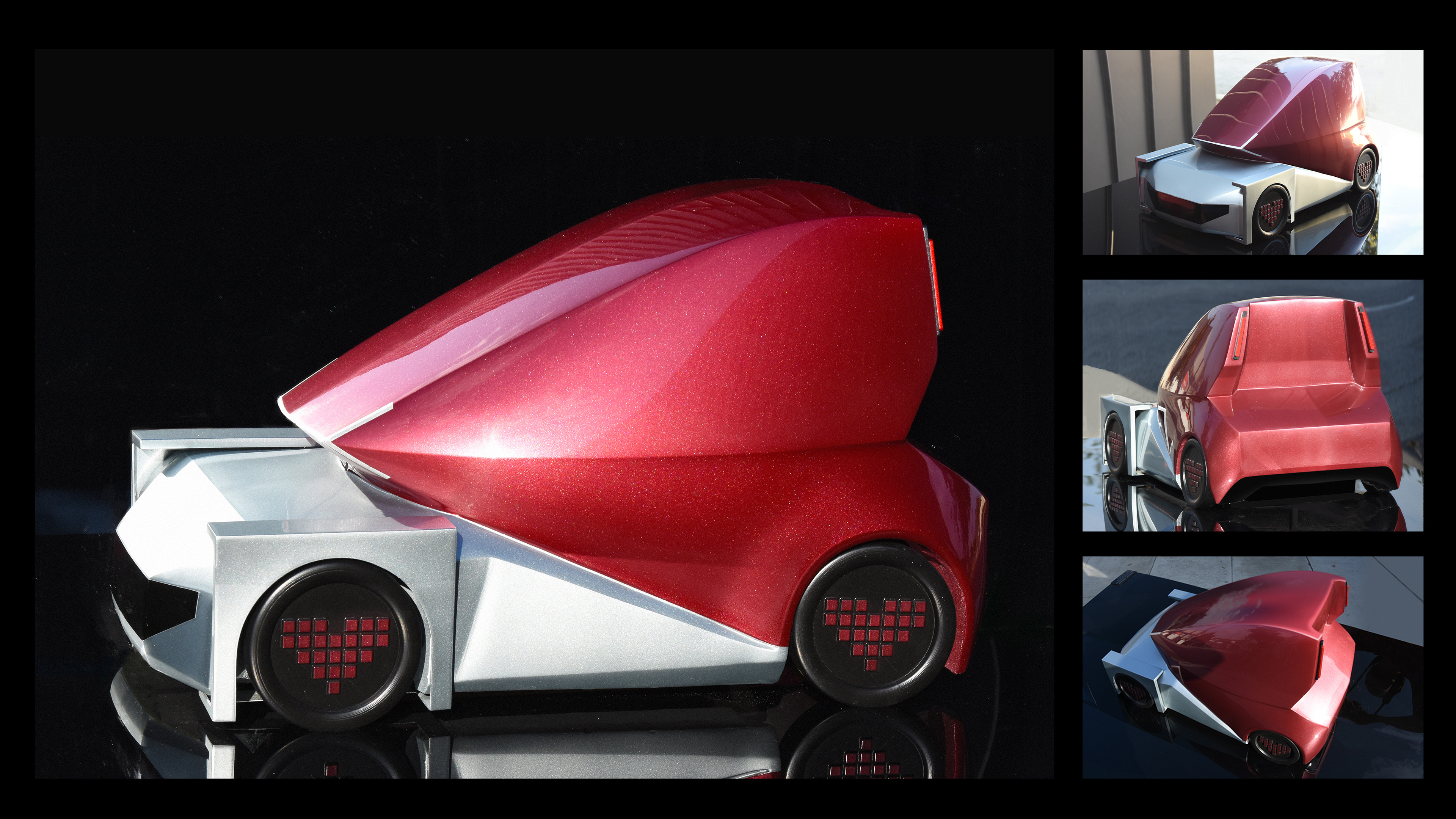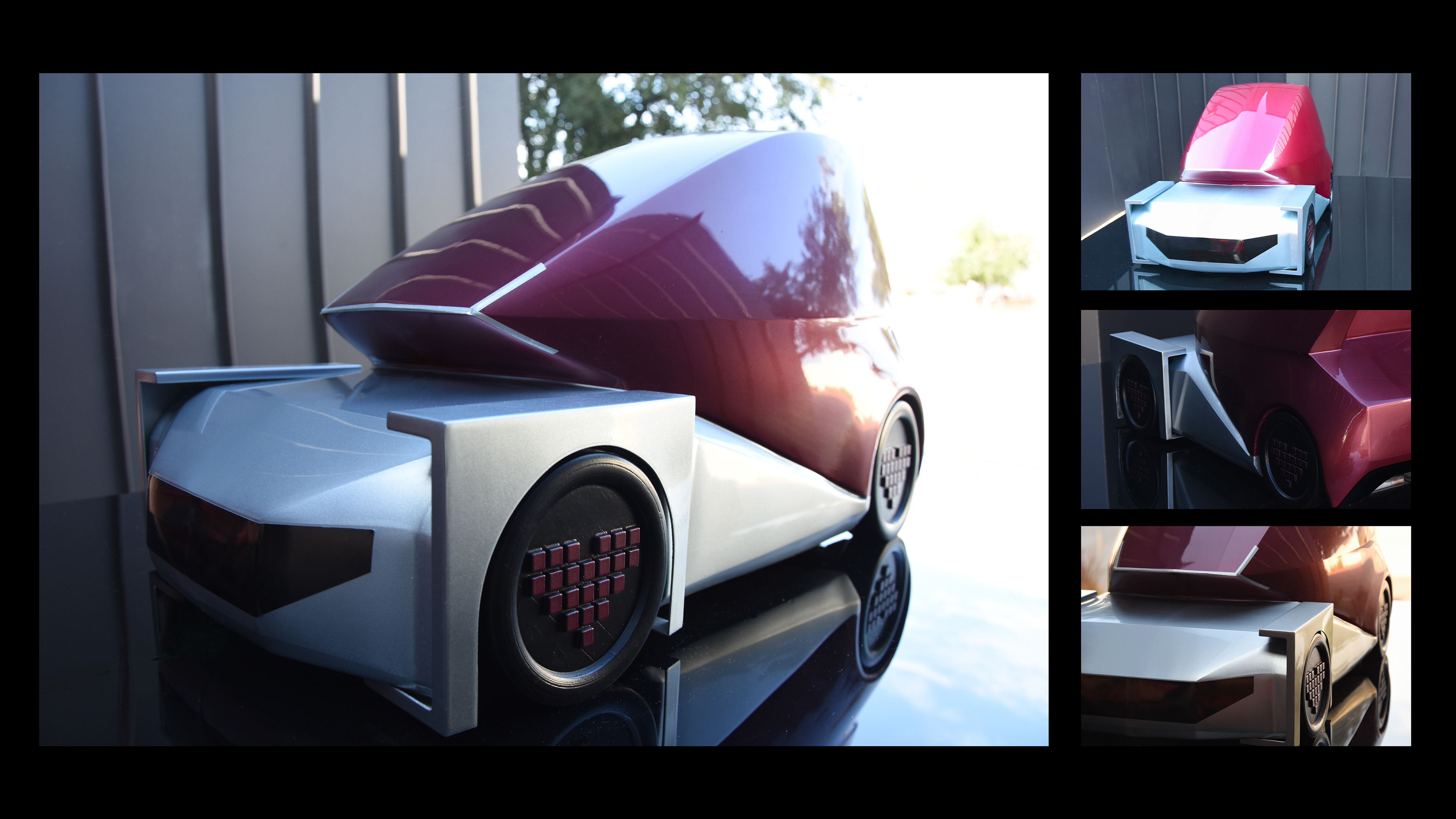 Exterior 4: Delivery vehicle for 2050 Concept: Third Wheel is an autonomous two-seater city car designed to spark first encounters. a playful vehicle that turns shared rides into moments of connection.