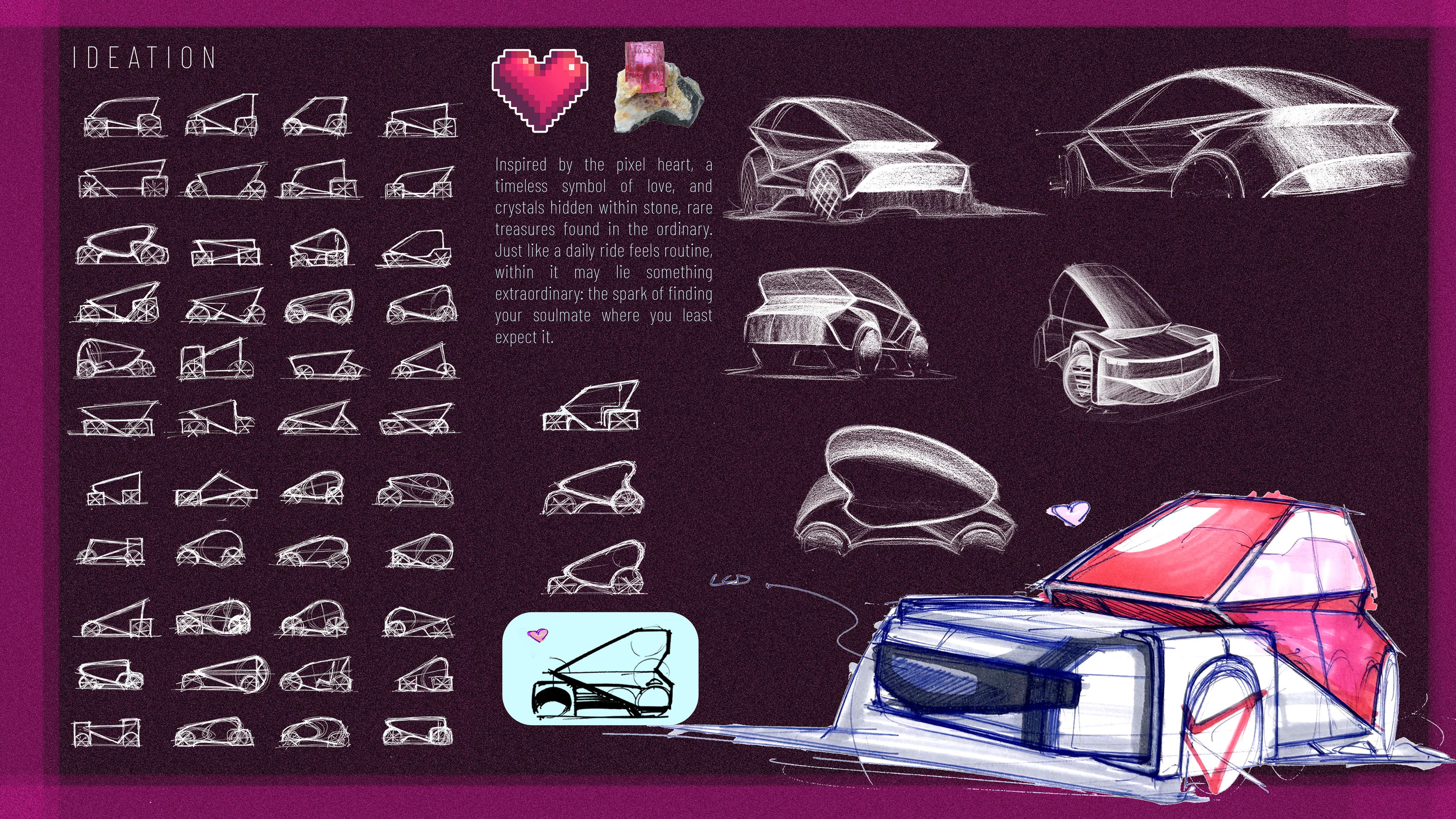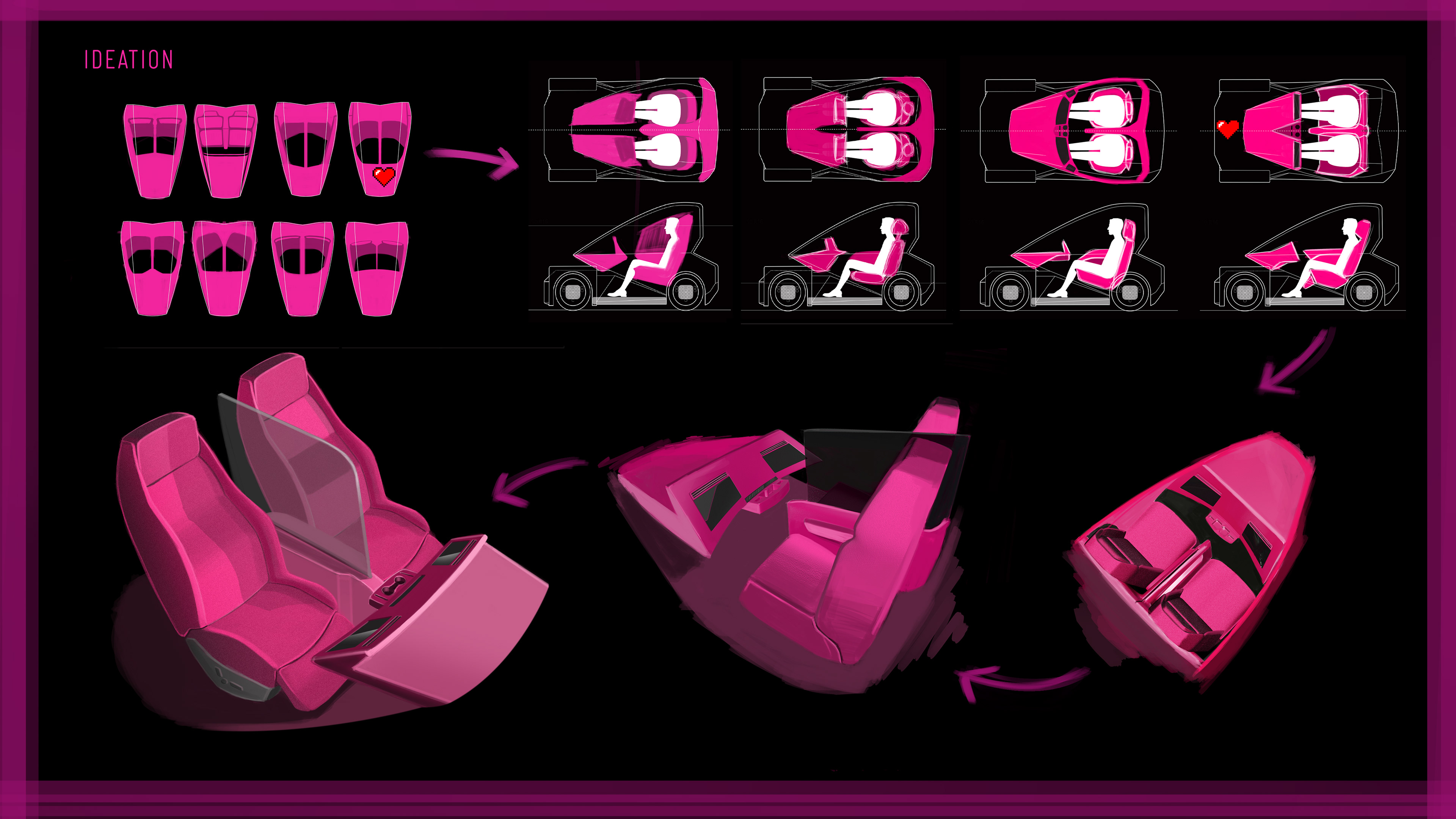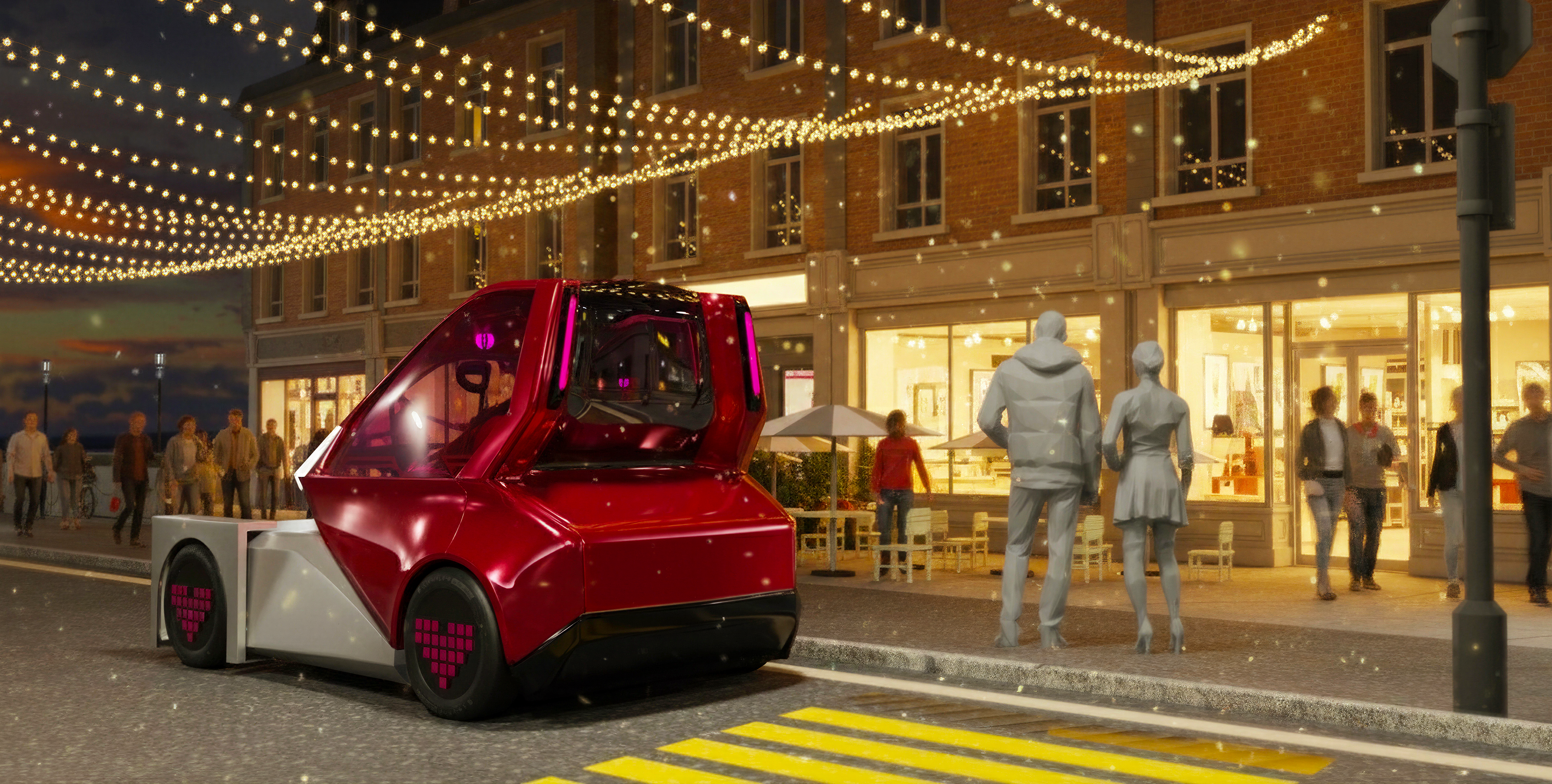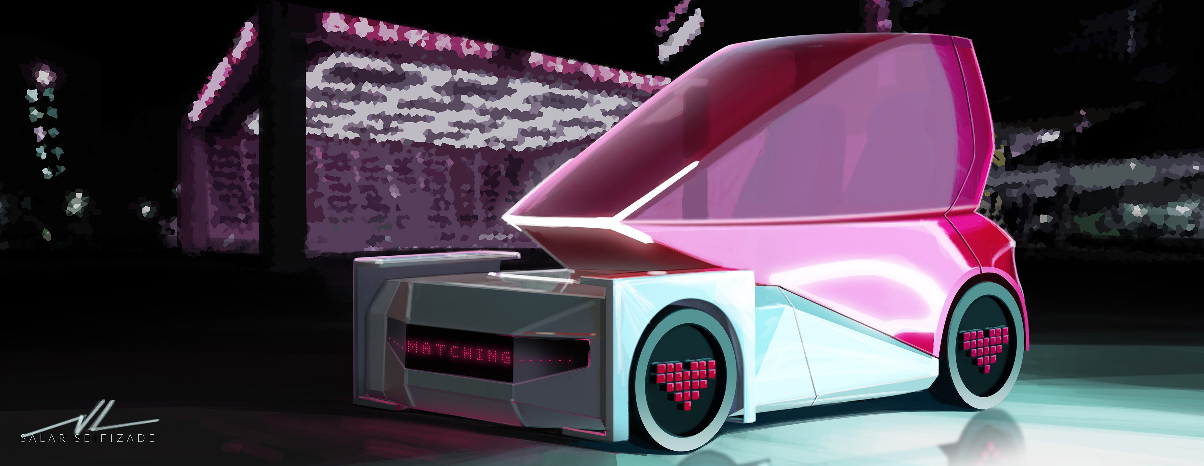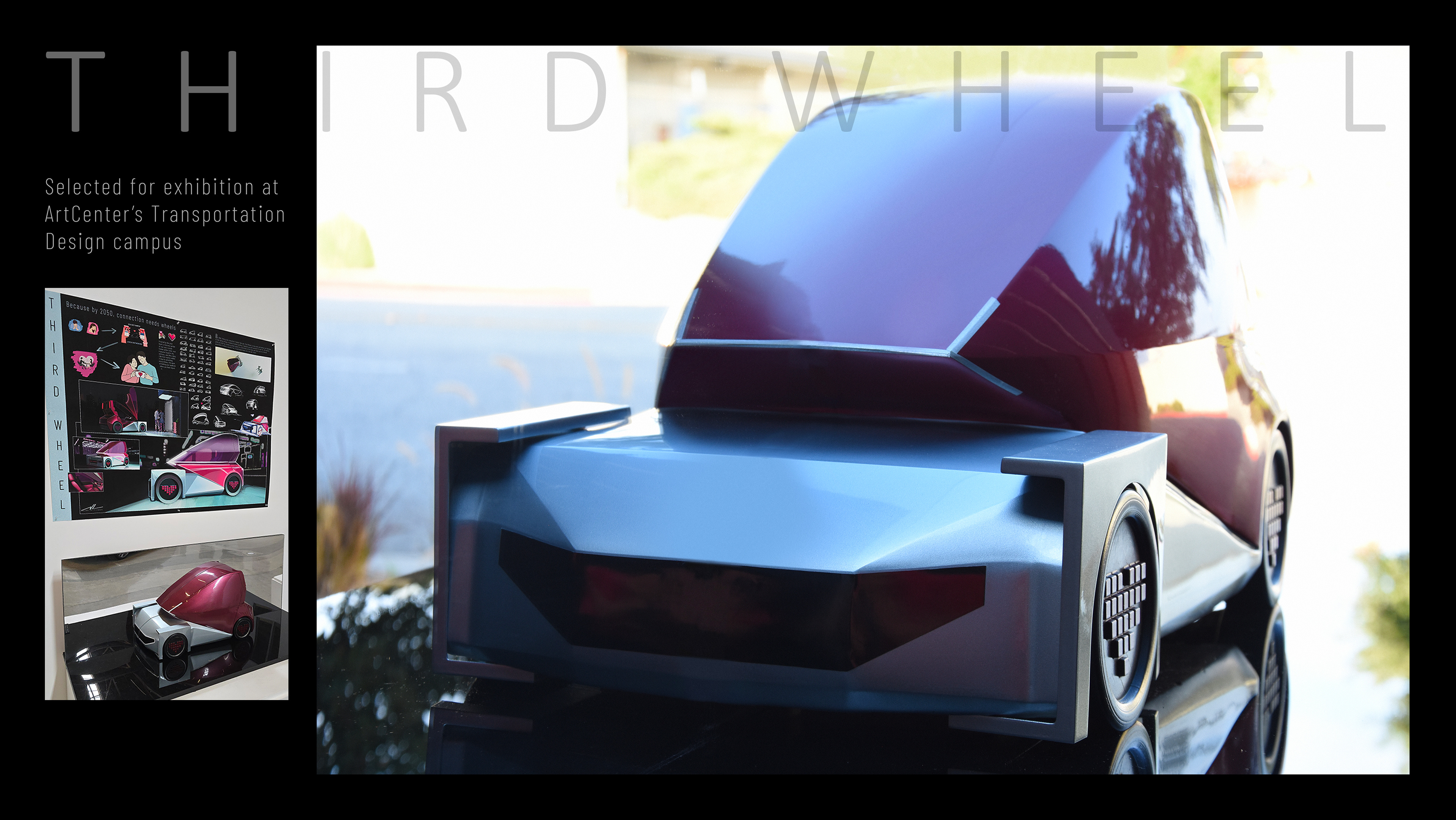 Exterior 4: Delivery vehicle for 2050 Concept: Third Wheel is an autonomous two-seater city car designed to spark first encounters. a playful vehicle that turns shared rides into moments of connection.