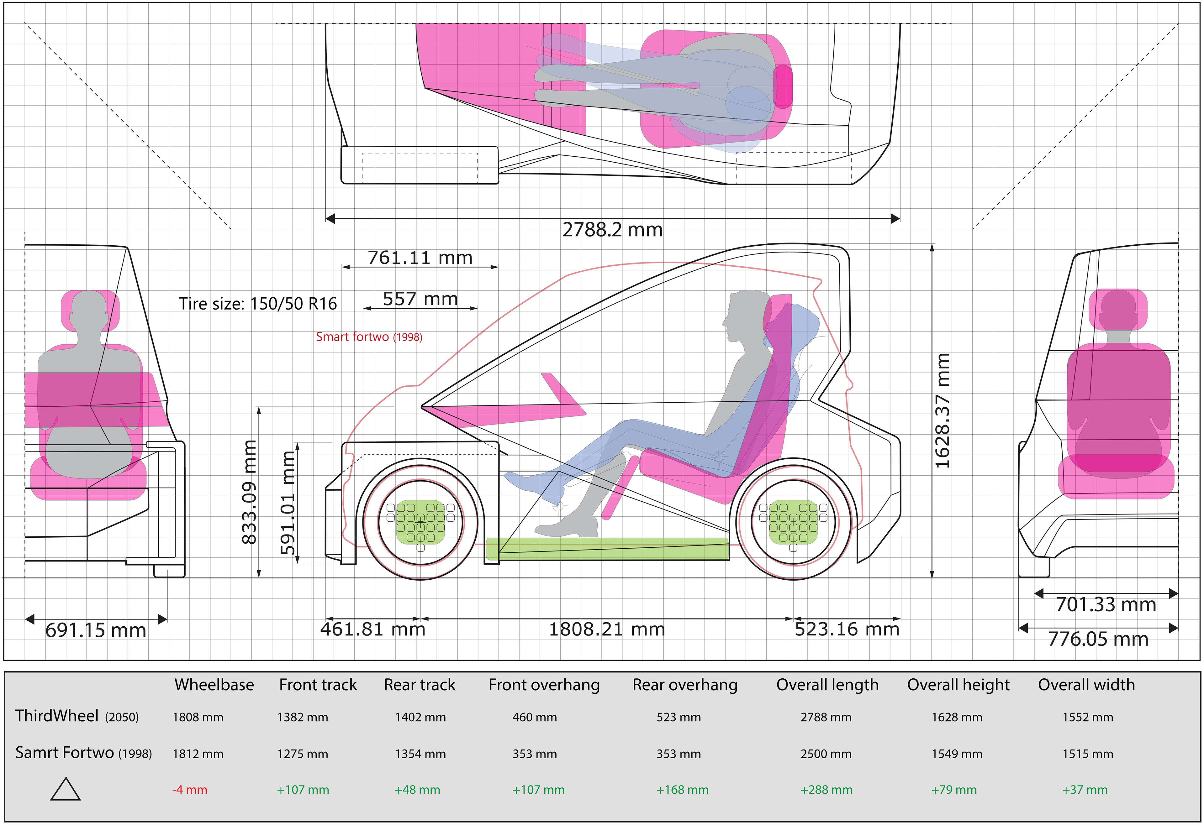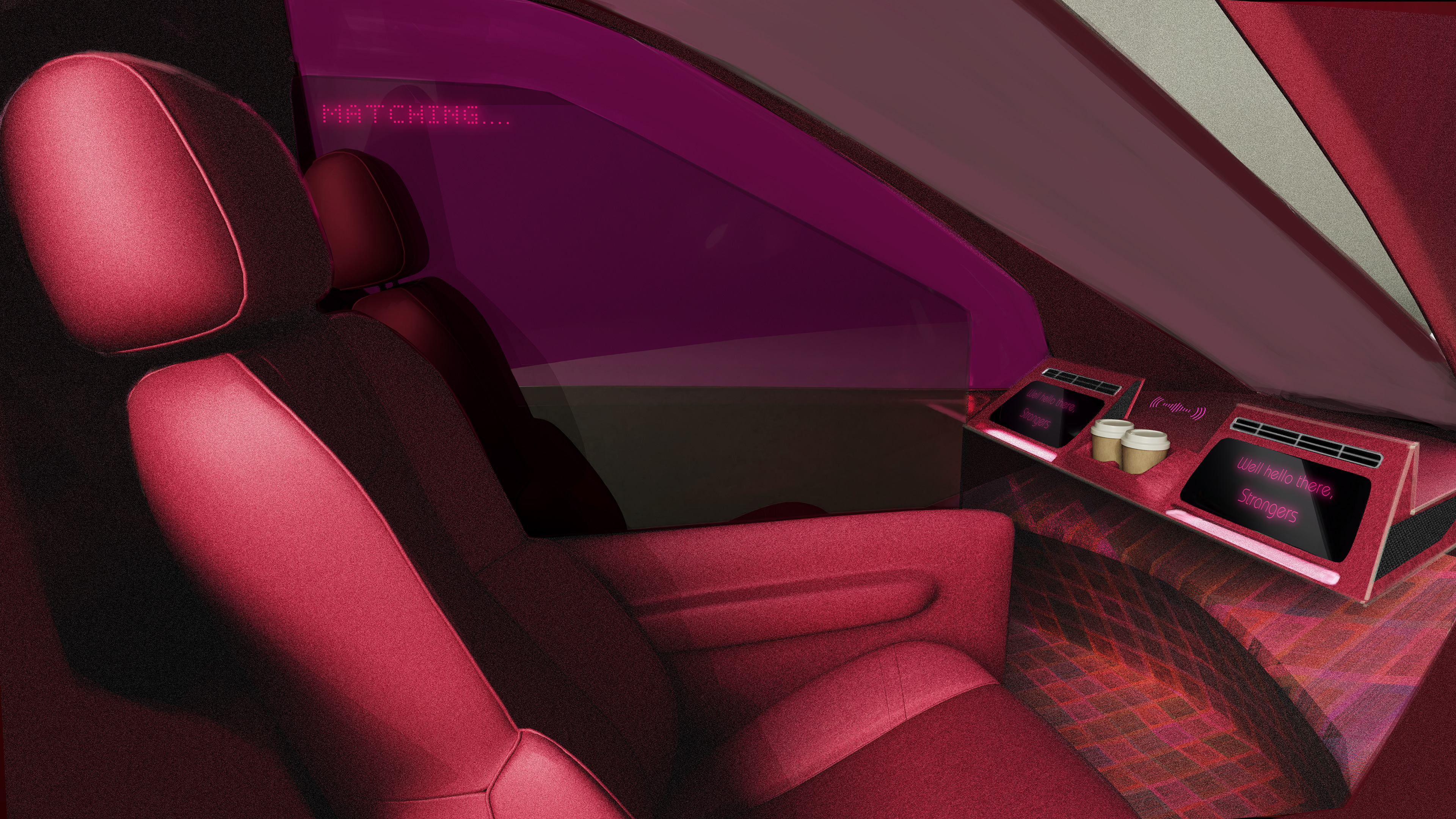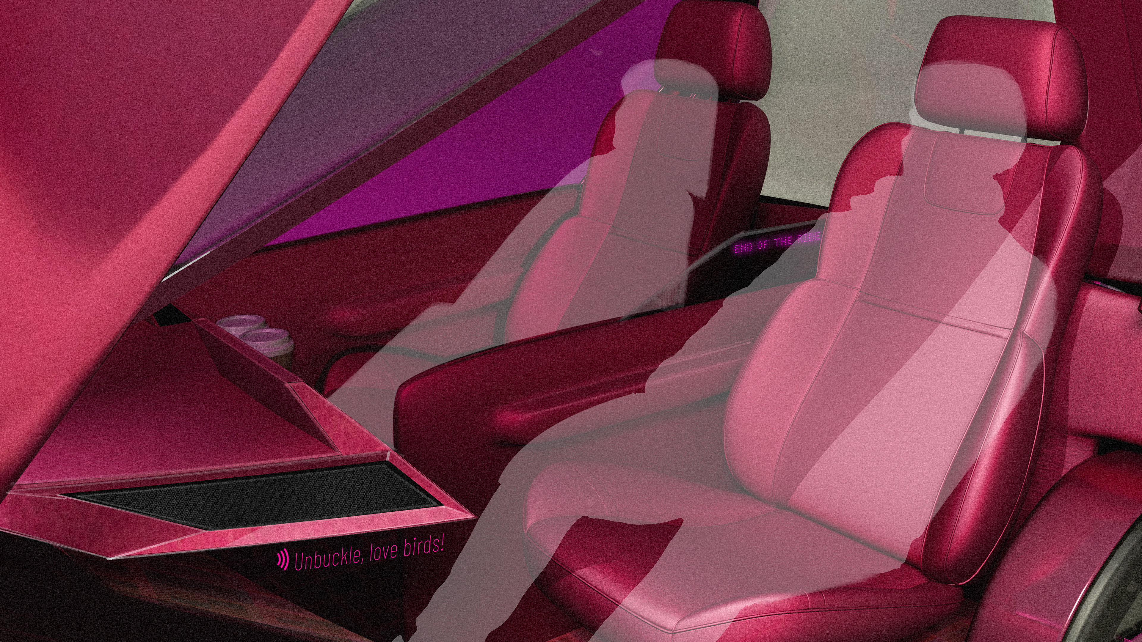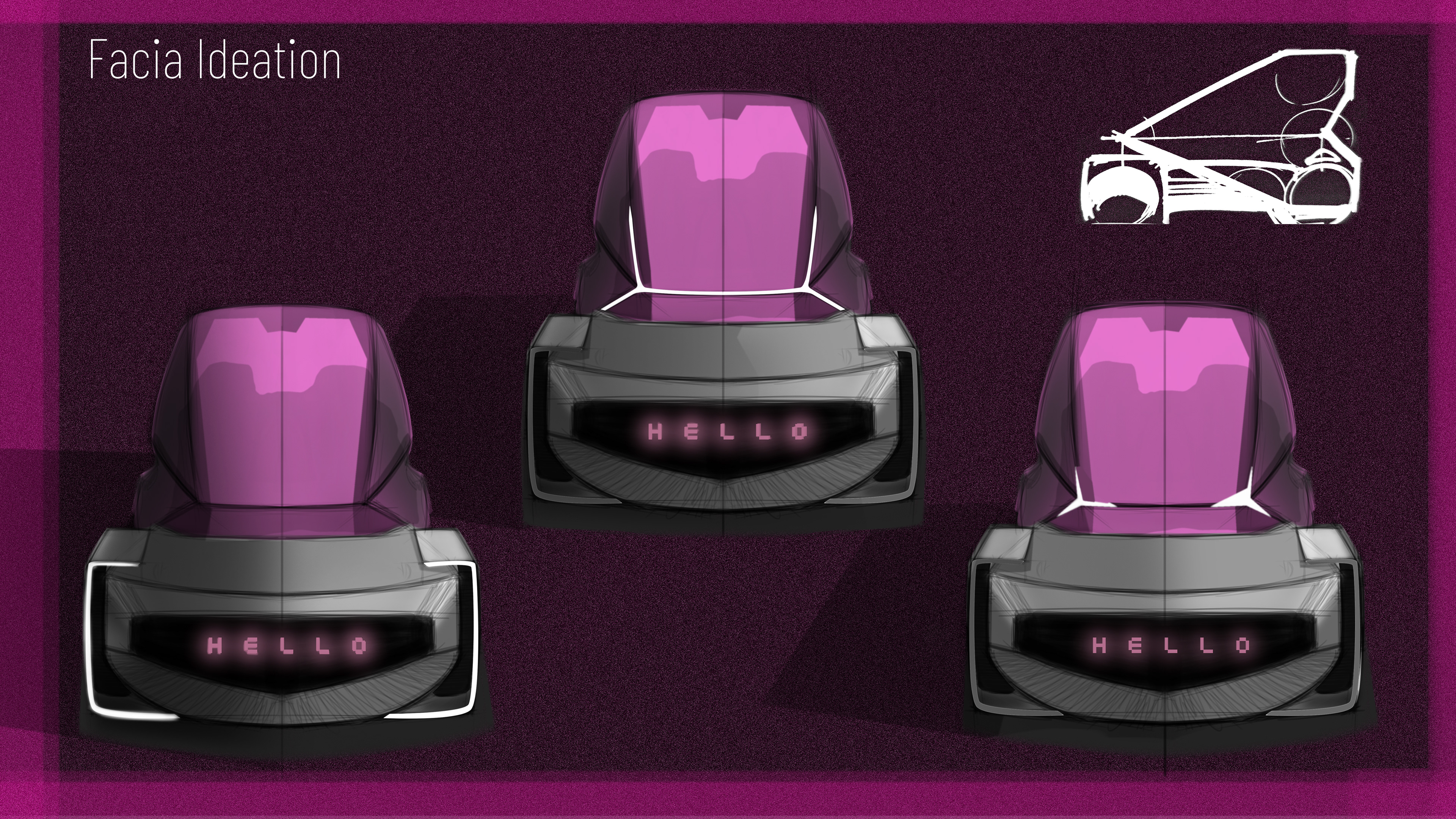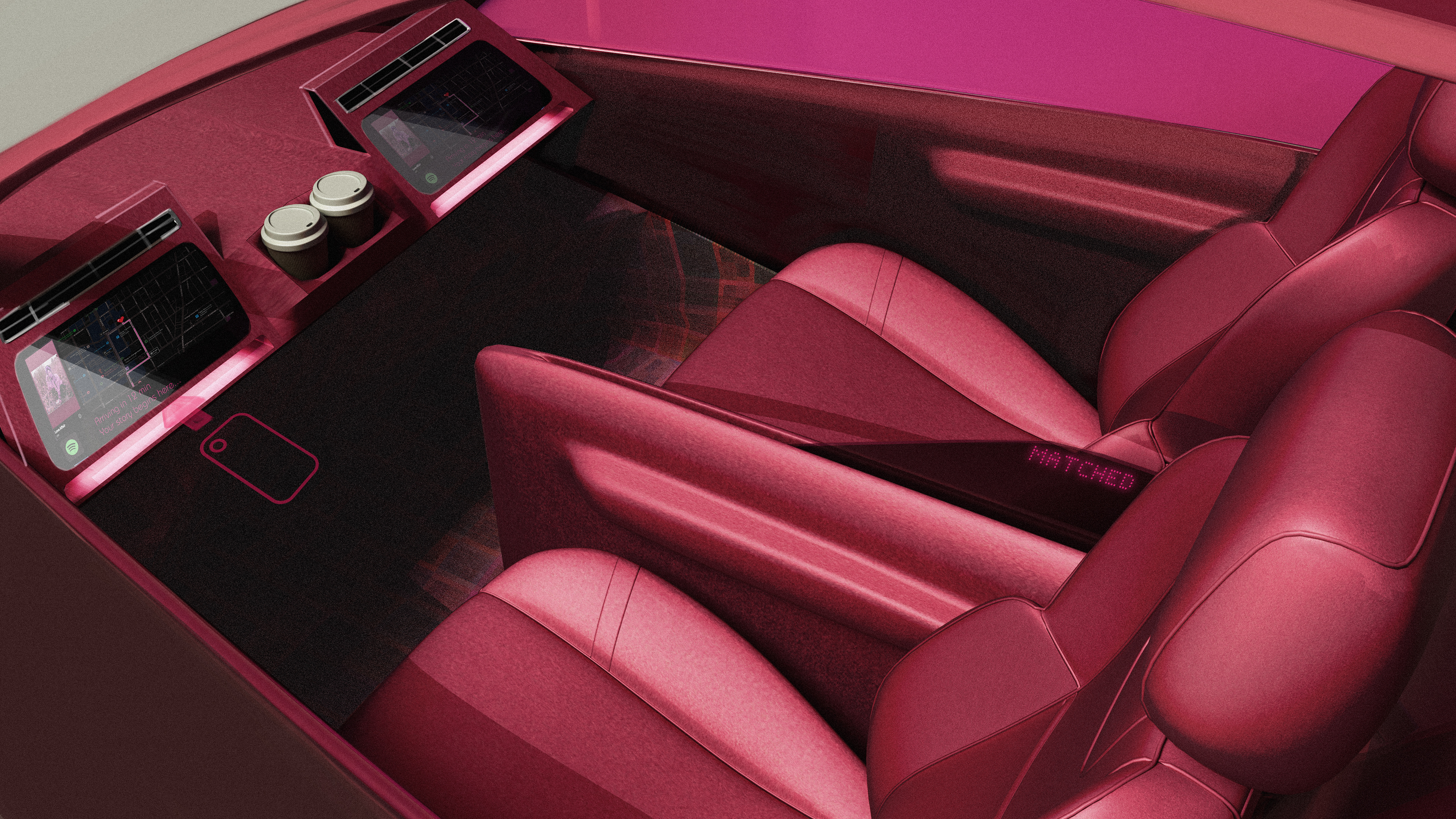 Exterior 4: Delivery vehicle for 2050 Concept: Third Wheel is an autonomous two-seater city car designed to spark first encounters. a playful vehicle that turns shared rides into moments of connection.