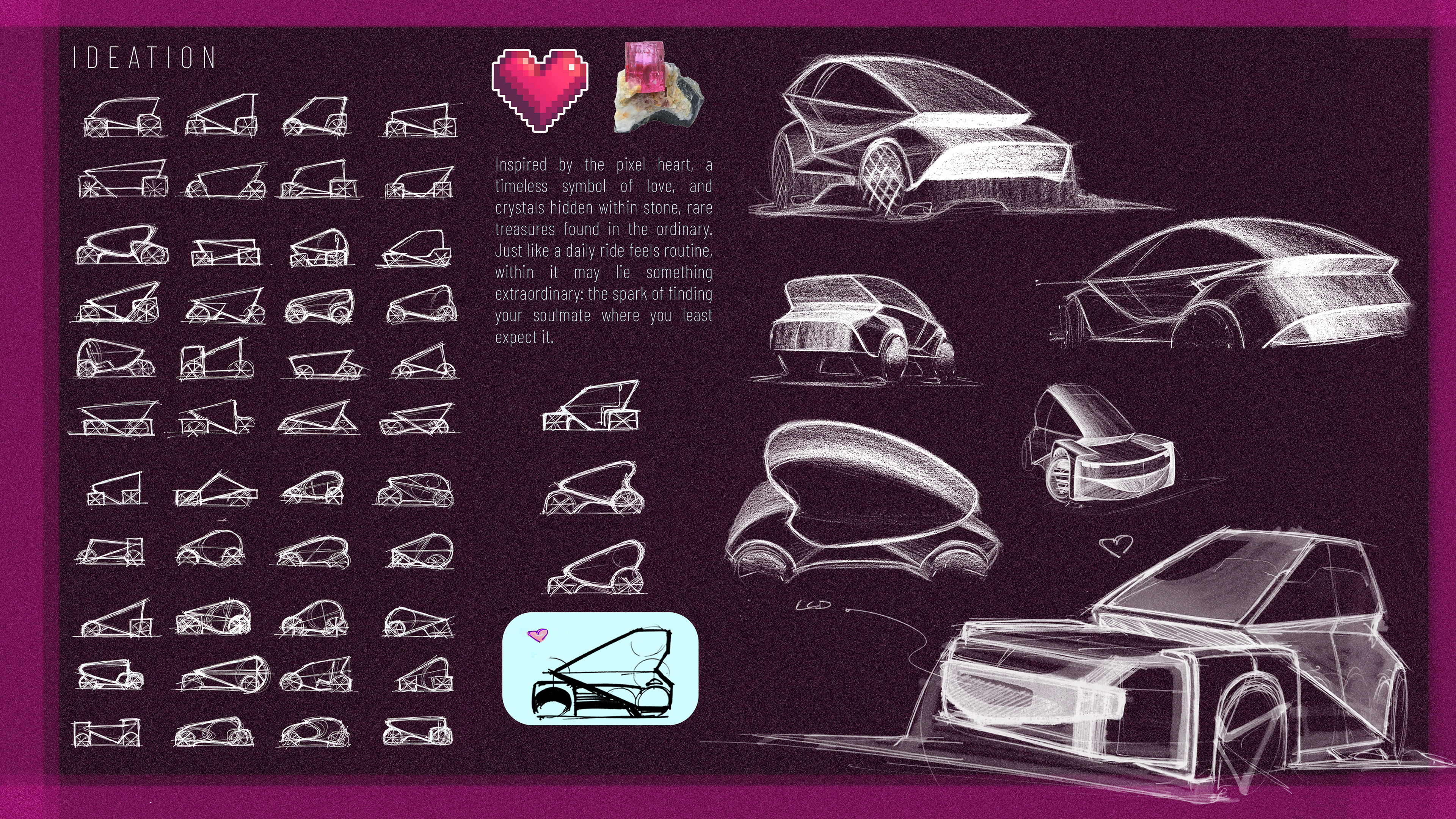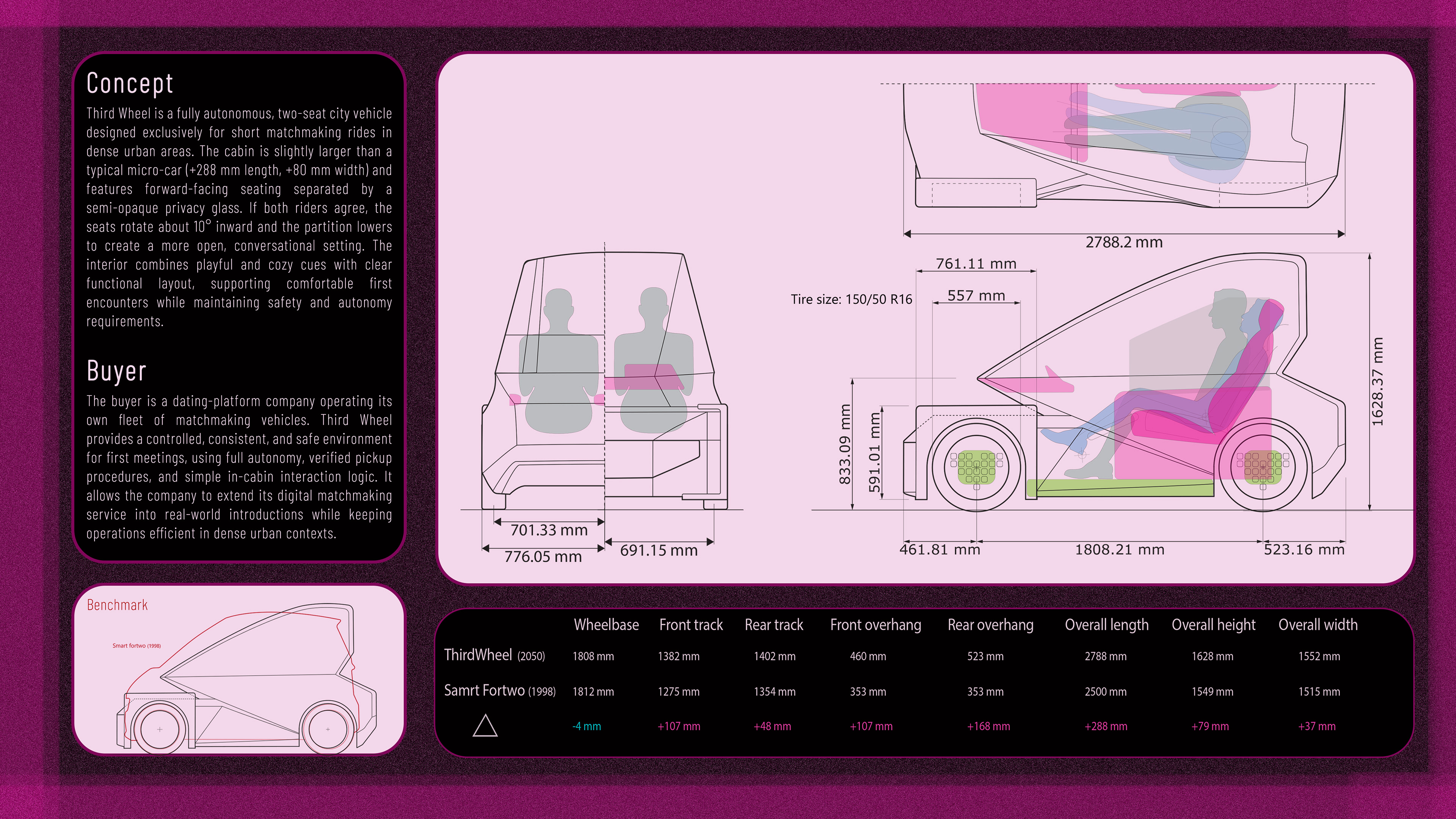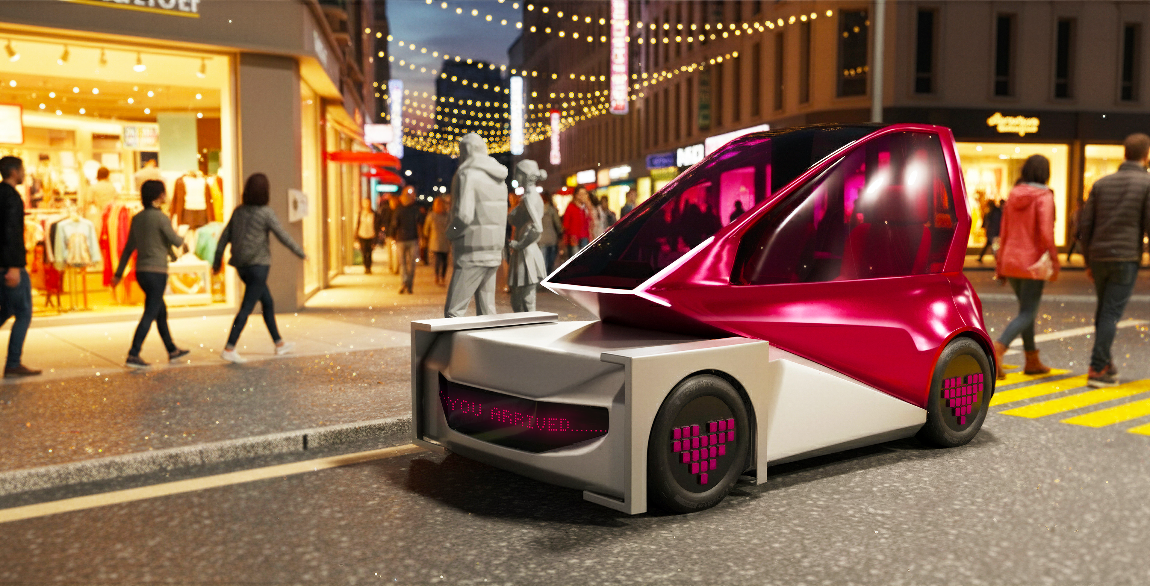 Exterior 4: Delivery vehicle for 2050 Third Wheel is an autonomous two-seater city car designed to spark first encounters. a playful vehicle that turns shared rides into moments of connection.